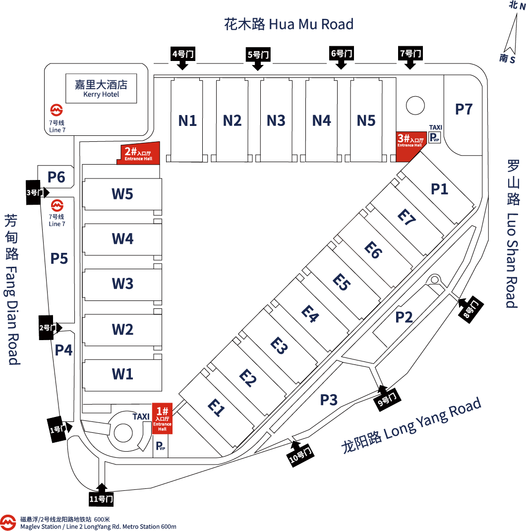 2. 将您的爱车停放于展馆附近的龙阳广场地下停车库(上海市浦东新区龙阳路2000号),后换乘坐地铁7号线或徒步至展馆南大厅(1号入口大厅)参观。